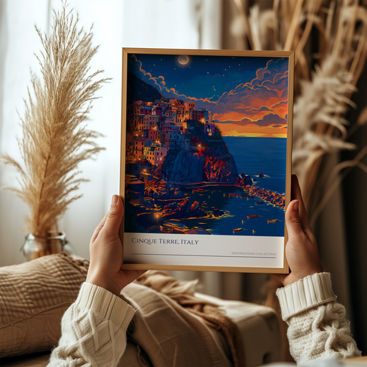 Cinque Terre Italy Night Sky Poster