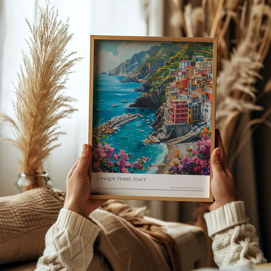 Cinque Terre Italy Oil Paint Style Poster