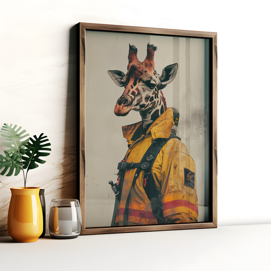Giraffe Firefighter Poster