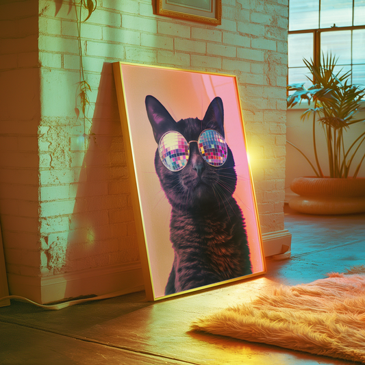 Disco Ball Sunglasses Cat Artwork Poster