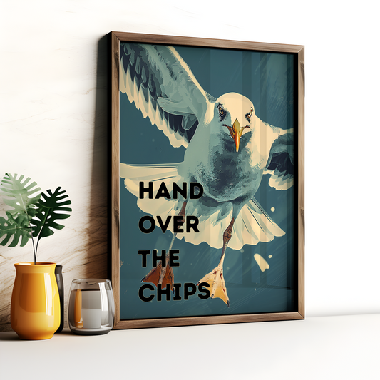 Hand Over The Chips Seagull Print, Funny Seagull Poster