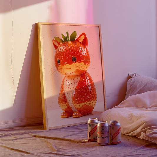 Giuseppe Acrimboldo Inspired Strawberry Cat Poster